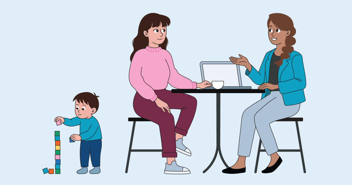 Voit tavata valmentajasi esimerkiksi viisi tuntia kuukaudessa. Sovitte yhdessä sinulle sopivan paikan ja ajan. Voit ottaa lapsesi mukaan tapaamisiin.